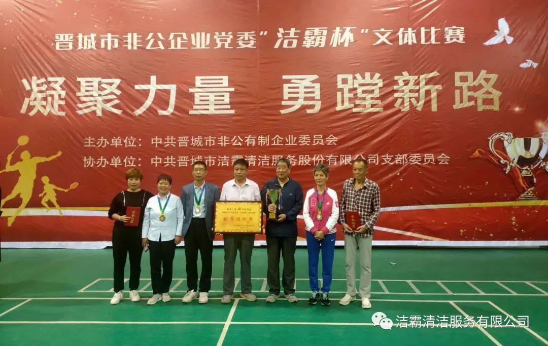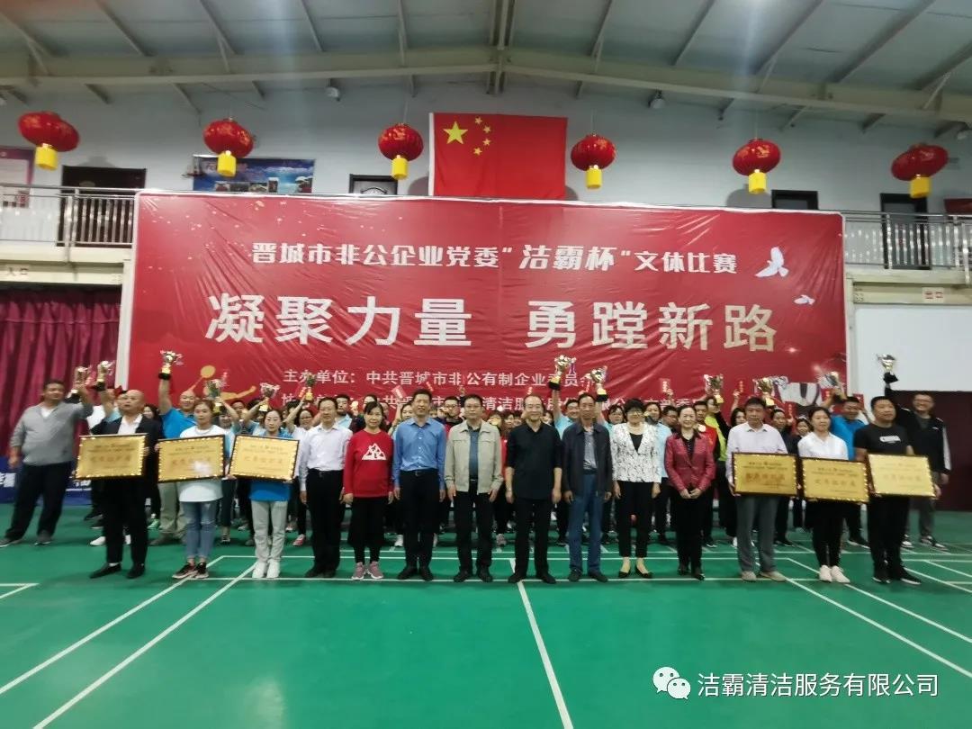 9月25日下午,晉城市非公企業(yè)黨委“潔霸杯”文體比賽落下帷幕。此次比賽由中共晉城市非公有制企業(yè)委員會主辦,中共晉城市潔霸清潔服務(wù)股份有限公司支部委員會冠名協(xié)辦。此次活動的主題是“凝聚力量 勇蹚新路”,旨在新中國成立71周年之際,全面展示非公企業(yè)黨組織開展群眾性體育活動的豐碩成果,以及廣大黨員干部創(chuàng)先爭優(yōu),奮發(fā)進(jìn)取,勇蹚新路,爭做時(shí)代先鋒的精神風(fēng)貌。